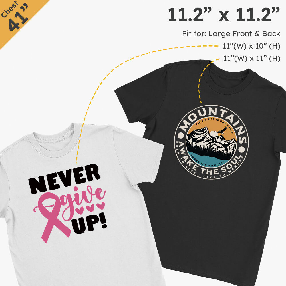 | Oversized Front/Back | 11.2″ x 14″ |